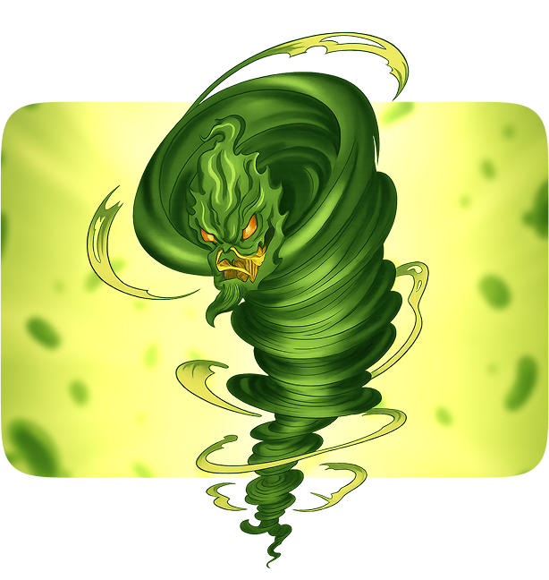 Flunado is a giant, spinning swirl of snotty trouble! He is a tornado made of germs, spreading coughs, sneezes, and the flu wherever he goes. One second you’re fine… the next—ACHOO!—you’re home with tissues and soup!