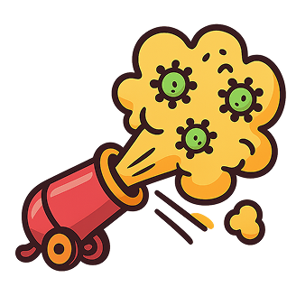 Launches contagious cough blasts across entire